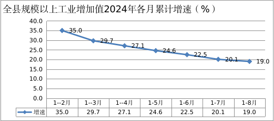 一)规模以上工业产值、增加值1-8月份,全县在统的规模以上工业企业共39完成工业产值206.93亿元,去年同期完成171.71亿元,同比增长20.51;工业增加值同比增长19.0于全市增速9.0个百分点(全市增速10.0全市增速排名第2位,5个农业旗县增速排名第1位。